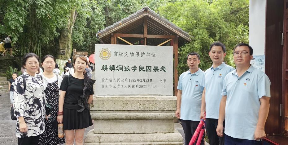 大家懷著崇敬的心情來到解放貴州紀念碑前,表達對革命先烈的無限敬意與哀思,重溫入黨誓詞,用錚錚誓言表達不忘初心、牢記使命的堅定信念。在愛國主義教育基地麒麟洞,愛國將領張學良、楊虎城曾先后被蔣介石關押于此。1985年這里設立了張、楊二將軍文物陳列室,內部陳設了珍貴的歷史文物、圖片物資,大家通過參觀學習,了解并重溫了“西安事變”的重大歷史意義。