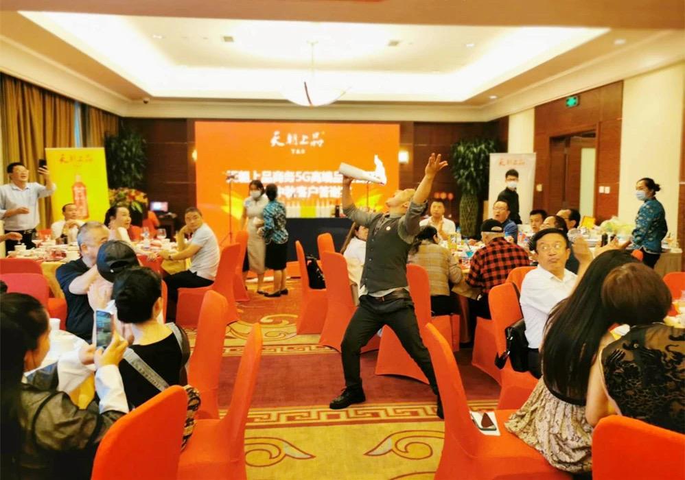 云南昆明北市區(qū)梁兵老總對(duì)天朝上品情有獨(dú)鐘,在后疫情時(shí)期,他率領(lǐng)銷售團(tuán)隊(duì)認(rèn)真貫徹總部戰(zhàn)略,融匯成功經(jīng)驗(yàn),優(yōu)化營銷模式,在曲靖舉辦有400余人參加的品鑒會(huì),天朝上品酒業(yè)辦公室主任韓萍到場致辭,天朝上品新品高端商務(wù)5G酒和貴人V博得了滿堂彩。
