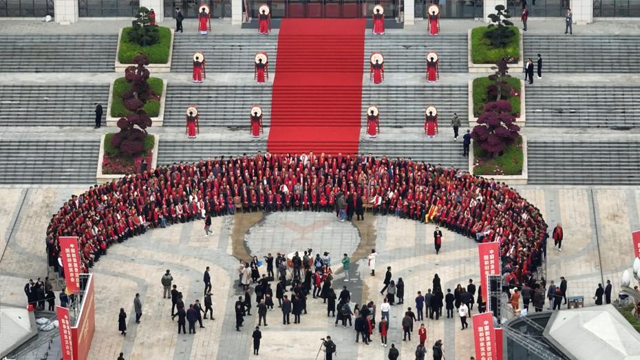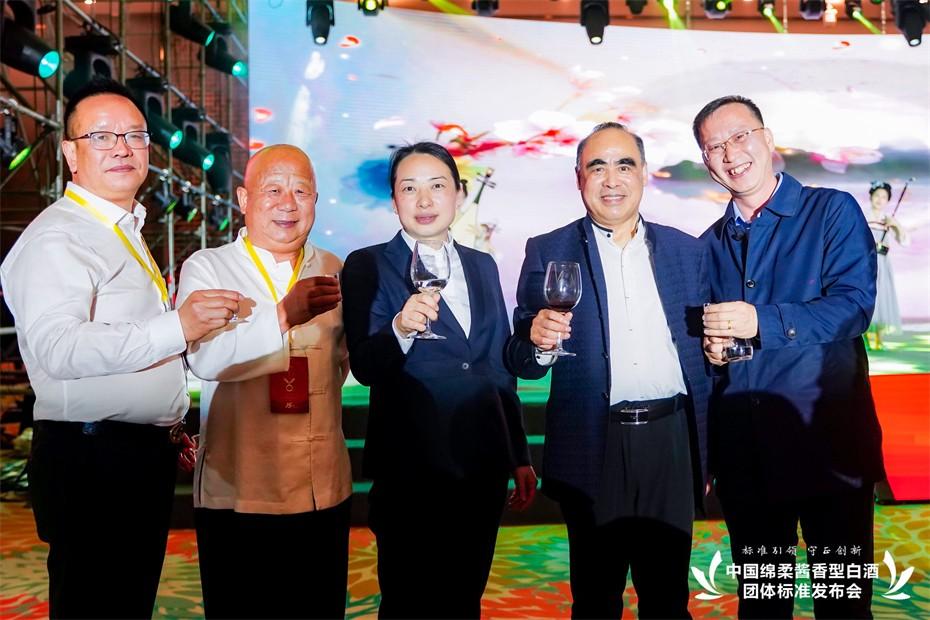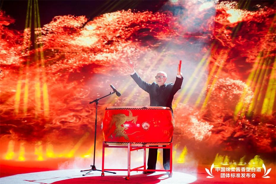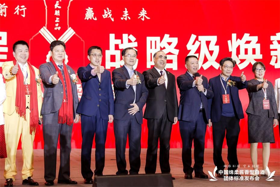 在現場千余位來賓共同見證下,中國食品工業協會總工程師李宇,中國食品發酵工業研究院副院長王德良,中國食品發酵工業研究院高級工程師孟鎮,中國酒類流通協會副秘書長趙禹,國家食品質量監督檢驗中心副主任程勁松,遵義市(仁懷市)酒業協會會長呂云懷,貴州省標準化協會理事長田軍,天朝上品迎賓酒業副董事長、首席專家梁明鋒,天朝上品集團董事長黃永毅一同敲響出征的戰鼓,《綿柔醬香型白酒》全國團體標準正式啟動。