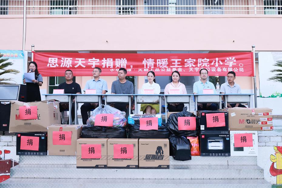 金風送爽佳節臨,桃李飄香暖人心。9月9日,在第40個教師節來臨之際,“思源天宇捐贈,情暖王家院小學”中華思源工程基金會·天朝上品公益基金、貴州天宇辦公設備有限公司教學用品捐贈儀式在貴陽貴安新區王家院村小學舉行,為全校師生帶來價值數萬元的電腦、打印機、書包、足球等教學辦公、學習用品、體育器材物資。貴安綜保區管委會組織人事部部長付建偉、天朝上品集團副總經理韓萍、貴安綜保區銷售服務產業鏈黨支部代表陸秀婷、中華思源工程基金會·天朝上品公益基金代表、王家院村委及駐村工作隊代表出席,王家院村小學全體師生參加了此次活動。