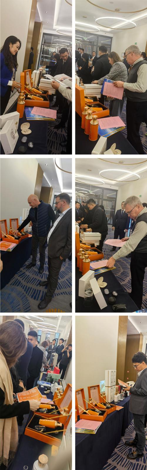 推介會現場,品質上乘,口感綿柔,包裝精美的天朝上品吸引了眾多海外賓客,天朝上品展示區品鑒、咨詢的賓客絡繹不絕,通過“觀、聞、嘗、得”四步品鑒法,品嘗綿柔醬香更綿更柔更醇香的口感,感受天朝上品品牌和文化的魅力,獲得大家一致好評。