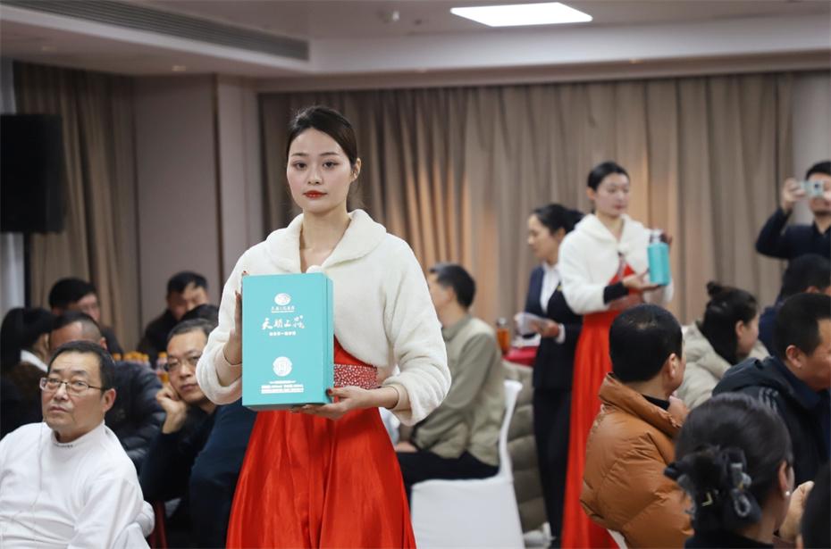 天朝上品集團副總經理曾祥坤介紹天朝上品國際生態圈項目,天朝上品以酒會友,未來將繼續加強和拓展合作的領域,全面展示綿柔醬香魅力,以市場布局新模式、營銷戰略新突破、服務體系新提升的新姿態,踐行“給世界一瓶好酒”的承諾,全力推進天朝上品在中原地區的發展。