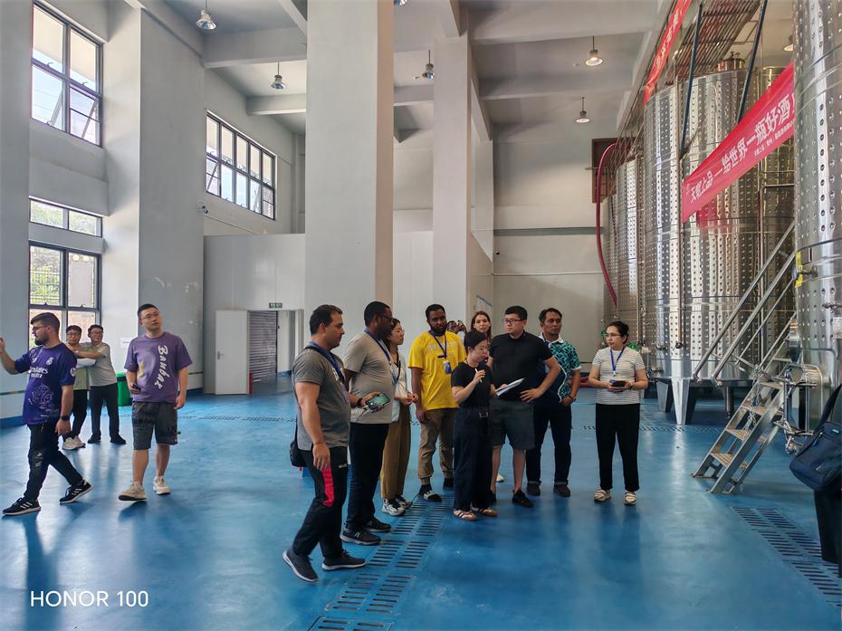 7月13日,來至古巴、烏茲別克斯坦、巴拿馬、肯尼亞的國際友人文化訪問團到訪天朝上品葡萄酒莊參觀考察,品鑒天朝上品葡萄酒。