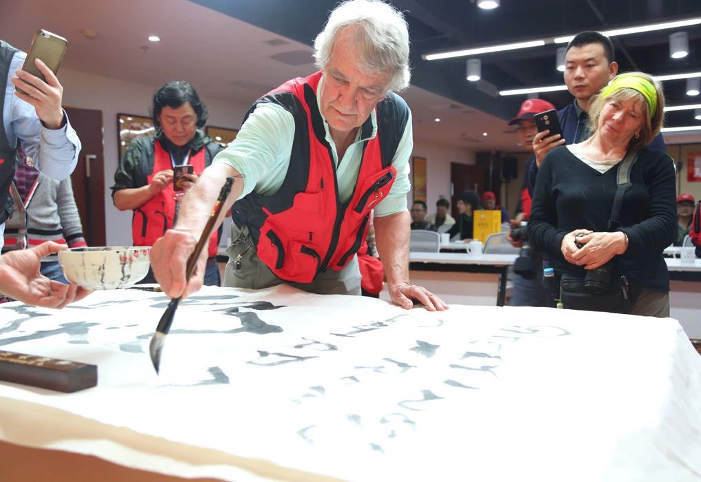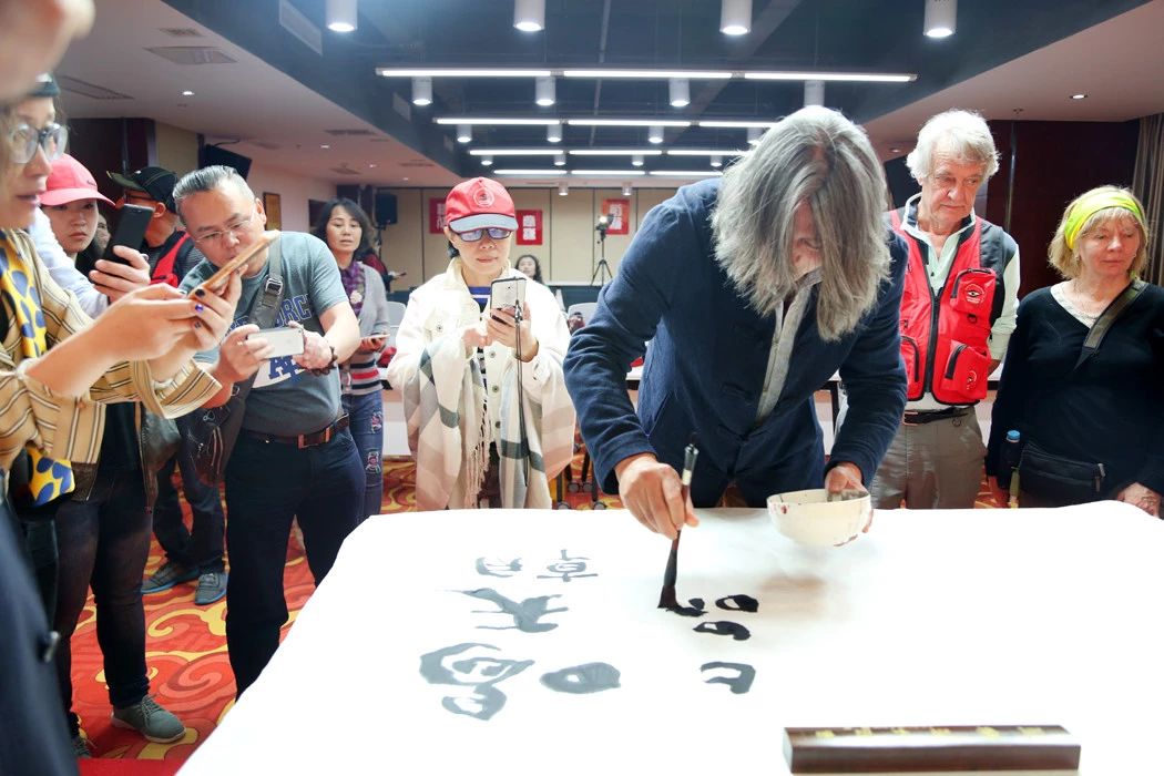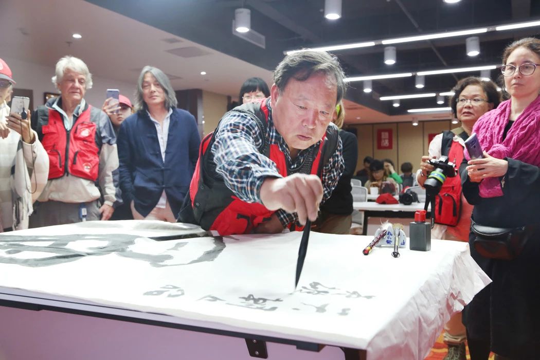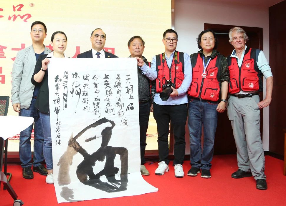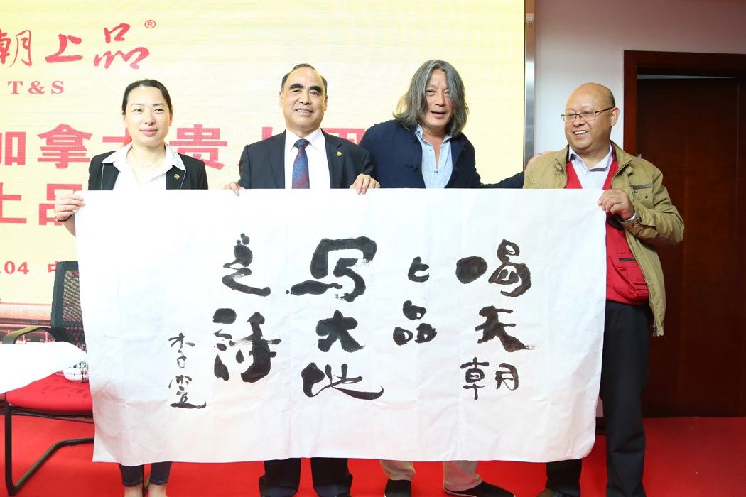 活動現場氣氛活躍,嘉賓們興致勃勃的賦詩作畫,贊譽天朝上品味之醇、香之濃、色之美。龍脈山水畫創始人丌春章先生現場賦詩一首:“英雄自古都飲酒,上品入膽壯志酬。今有中加攝影團,天朝飲過揚九州。”瑞典詩人李笠題詞:“喝天朝上品,寫大地之詩。”PSA美國攝影學會主席Ted Nodwell也欣然用毛筆繪出楓葉,用英文題詞:“來自加拿大的問候。”中外嘉賓現場揮毫潑墨,表達了對柔和醬香美酒的喜愛之情,為天朝上品留下了精美的書畫作品。