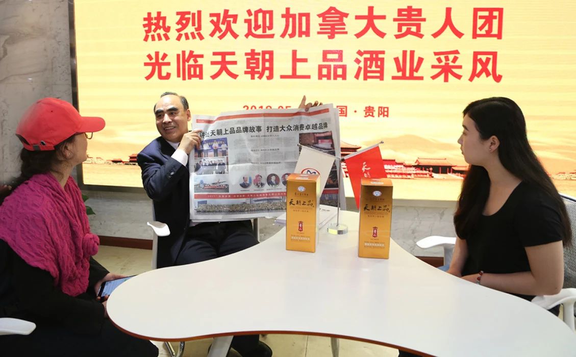 2018年5月4日,“加拿大攝影師眼中的貴州”攝影活動走進天朝上品,40余位中外攝影師來到天朝上品酒業采風,用光影這一國際語言,從西方人的視角向世界展示天朝上品的品牌文化,講述天朝上品的品牌故事,激發北美游客走進貴州,了解中國白酒,認識柔和醬香。天朝上品酒業總裁黃永毅,副總裁江貽燦、吳瑛和財務總監李佳玲陪同采風。《世界華文媒體》記者呂芳、《多倫多新聞網》記者趙紫月、《國際藝術新聞網》攝影記者徐智、《健康生活報道》記者馬麗霞對天朝上品作了專題采訪。